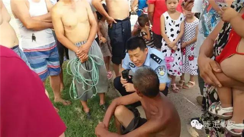 工作人員到現(xiàn)場(chǎng)后與老人交談,老人有些神志不清,也不知道是什么時(shí)候掉落水的。