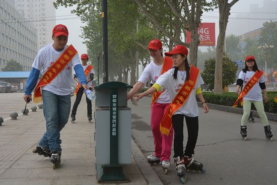 [邯鄲新聞]4月20日上午7點,由共青團邯鄲市委、邯鄲交通廣播電臺主辦,河北趙王集團有限公司協(xié)辦的“善美邯鄲行、最美青春路首屆邯鄲市青少年文化節(jié) 綠色環(huán)保輪滑行活動”,在邯鄲學院如期進行。30余名90后輪滑愛好者組成輪滑環(huán)保志愿服務(wù)隊,身著統(tǒng)一服裝、從邯鄲學院出發(fā),沿滏河大街-人民路-中華大街滑行,一路上撿拾飲料瓶、塑料袋等白色垃圾,引起了廣大市民的強烈關(guān)注。這次“90后的五四情結(jié)”活動,展示了青少年的生活風采,宣傳了綠色環(huán)保理念。