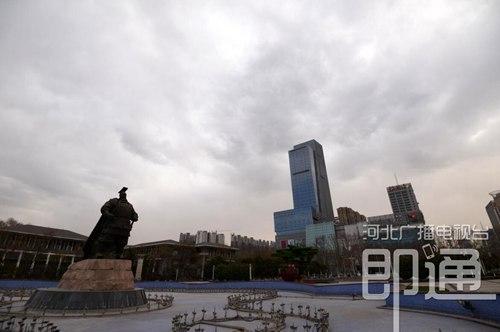約9點(diǎn)30分,天空陰云密布,邯鄲上空西側(cè)依然藍(lán)天白云,東側(cè)則是烏云密布。